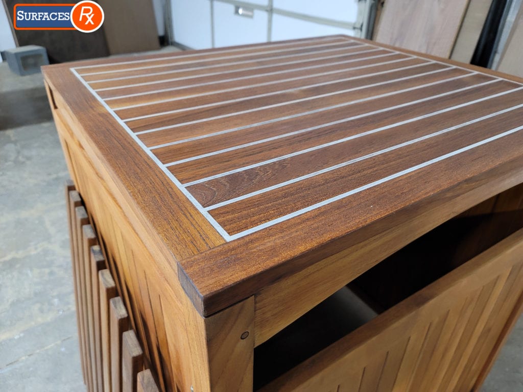 Surfaces Rx offers a Premium Dallas Summertime Outdoor Teak Furniture Refinishing package that includes pickup, refinishing, and delivery.